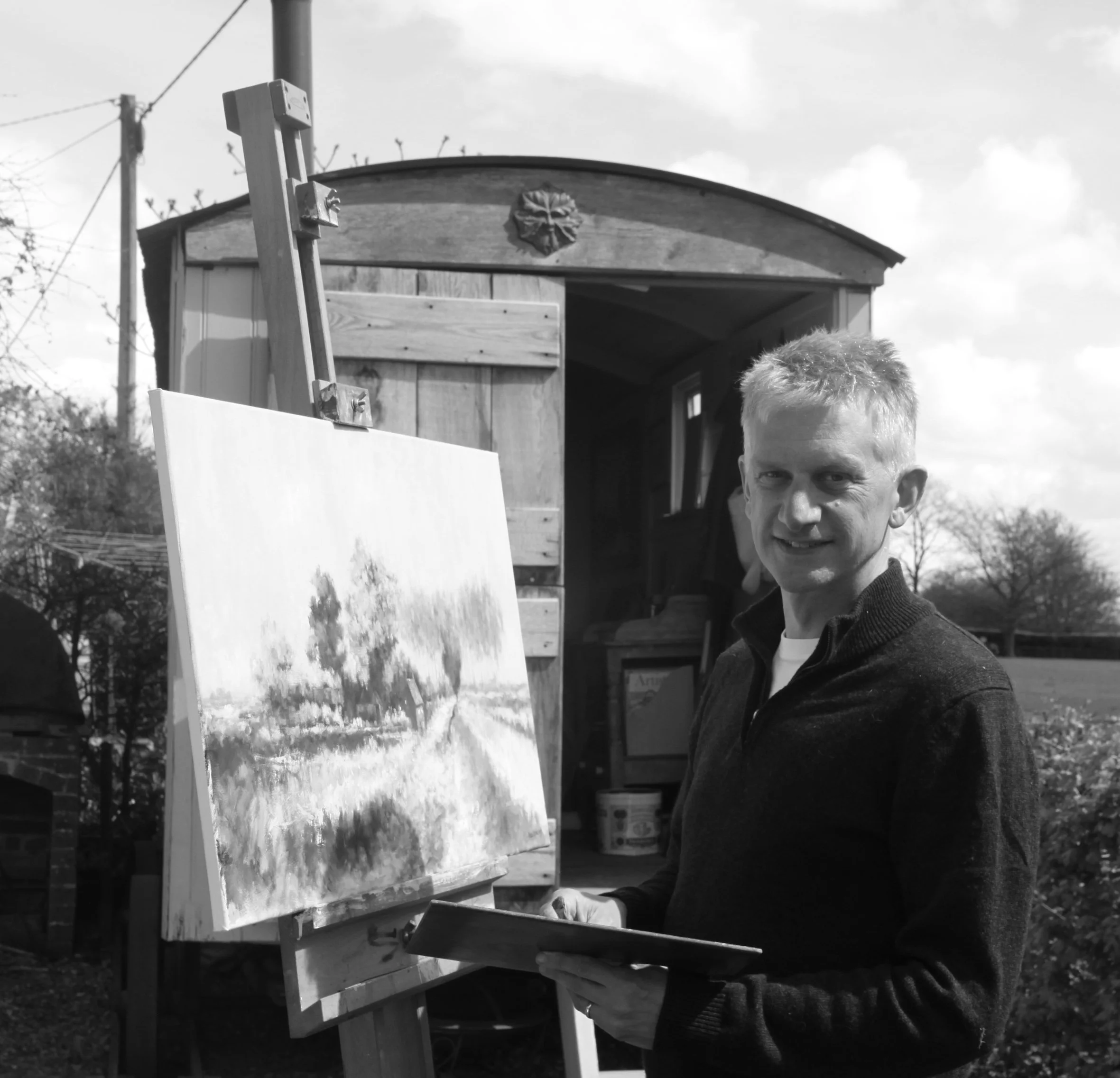 Paul Oakley is an artist living and working in Wiltshire. Specialising in oil painting, Paul is predominantly a landscape artist and developed his painting style through studying the works of artists such as Edward Seago and his contemporaries. He enjoys being out in the elements capturing a moment in the landscape as well as painting in his studio, which is a traditional Shepherd’s Hut. Paul also enjoys painting still life and is always looking for new ways to paint everyday objects. In 2017 Paul attained a Diploma in oil painting from the Norfolk Painting School which has added a greater technical understanding of this medium. Paul regularly exhibits his work, in particular, as part of Marlborough Open Studios.